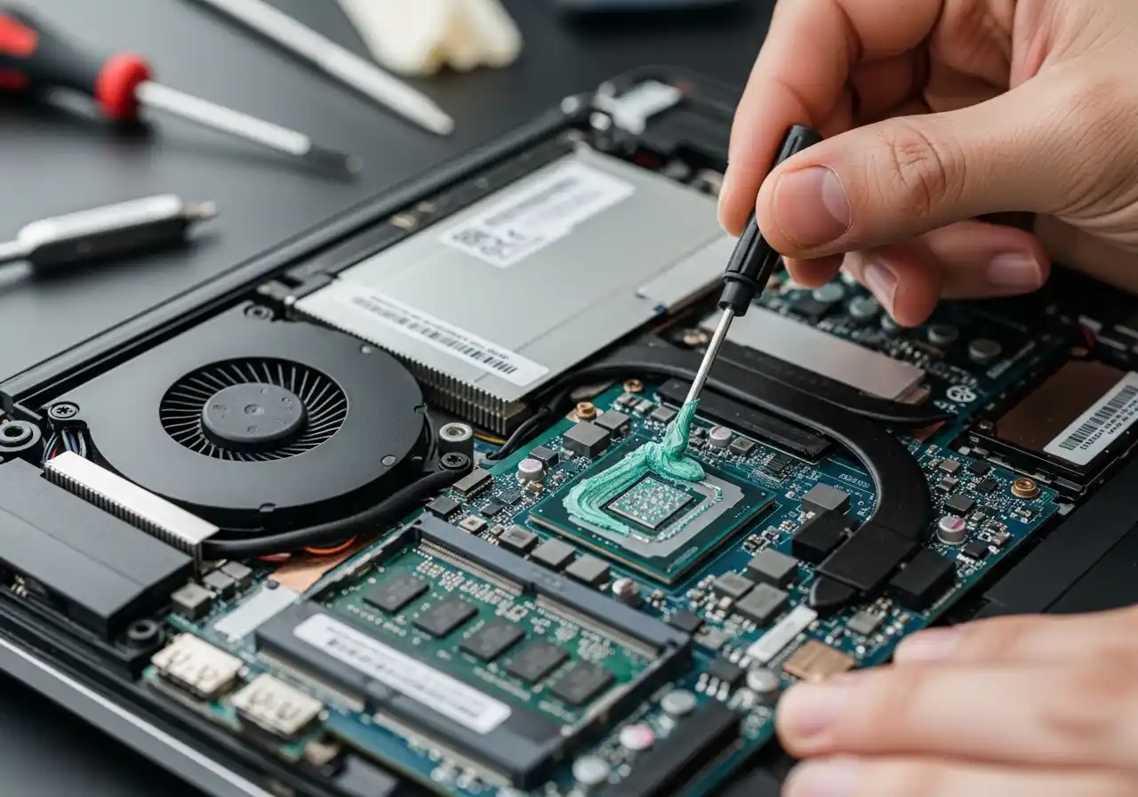 CPU and GPU chips transfer heat through a thin layer of thermal compound. On laptops over 2–3 years old, this paste dries and cracks. We open your laptop, clean the heatsink, replace the thermal compound, check the fan, and stress-test everything before it comes back to you.